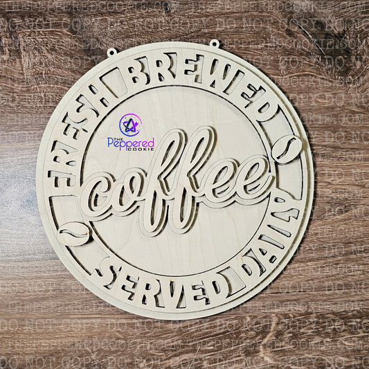 Home Decor - Coffee Round Fresh Brewed Daily Wall Hanger UNFINISHED