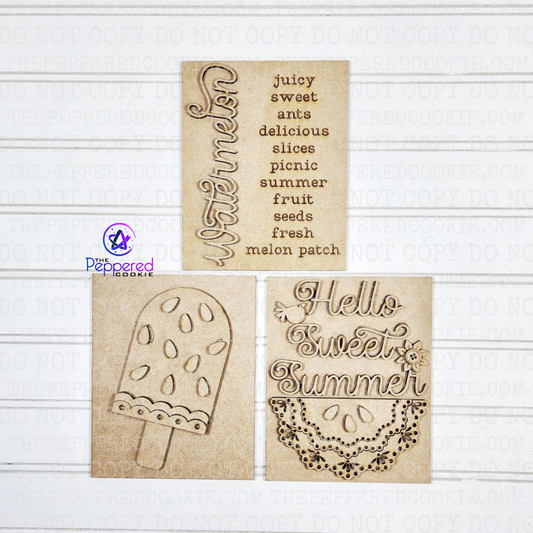 Home Decor - Hello Summer Watermelon Sign Trio UNFINISHED