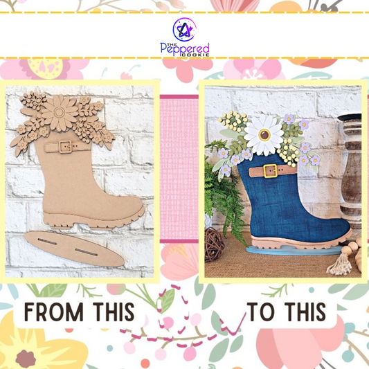 Shelf Sitter - Floral Rainboot UNFINISHED