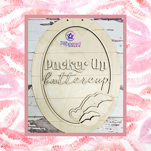 Door Hanger - Pucker Up Buttercup Valentine UNFINISHED
