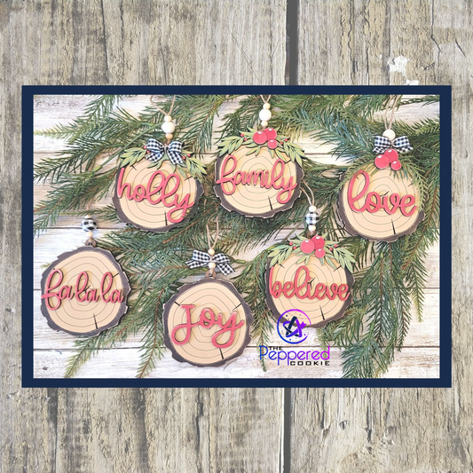 Christmas Ornament - Wood Slice Ornament Words Set Unfinished