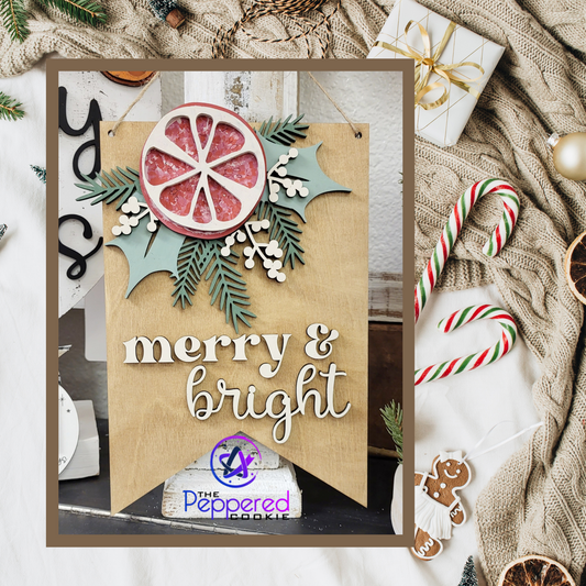 Door Hanger - Hygge Merry Christmas Bells and Fruit UNFINISHED
