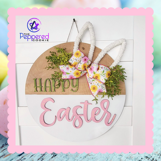 Door Hanger - Happy Easter Bunny Ear UNFINISHED