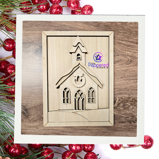 Home Decor - Christmas Village Framed Church Sign UNFINISHED