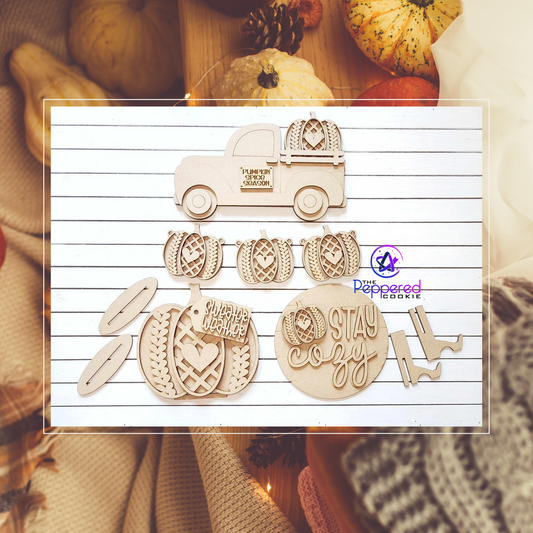 Tiered Tray Decor - Pumpkin Sweater Weather Decor Set UNFINISHED