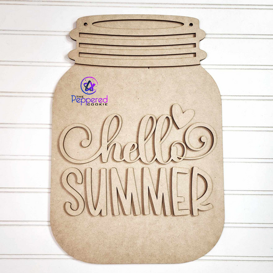 Door Hanger - Hello Summer Mason Jar UNFINISHED