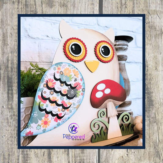 Shelf Sitter - Owl with Mushrooms UNFINISHED