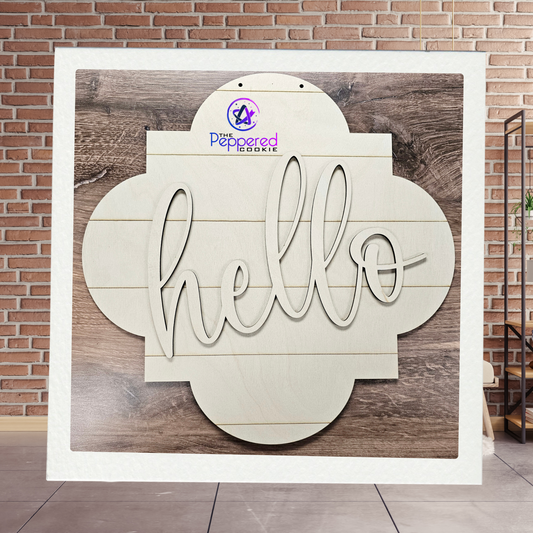 Door Hanger - Quatrefoil Hello UNFINISHED